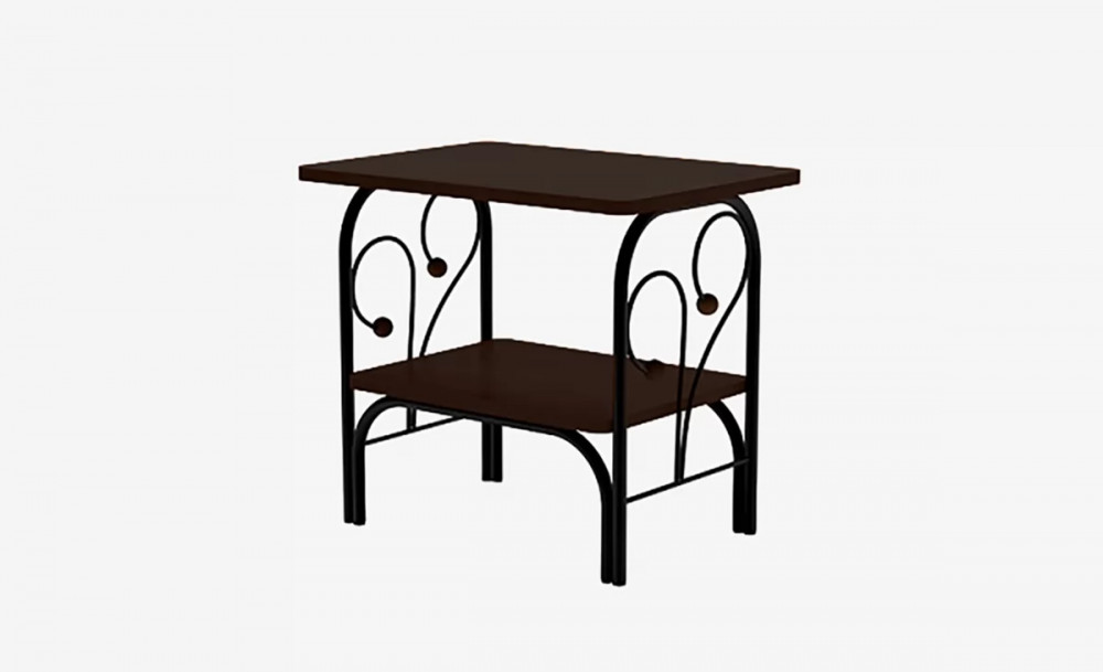 Тумба прикроватная "Версаль" с коваными элементами, черная (полки-венге)