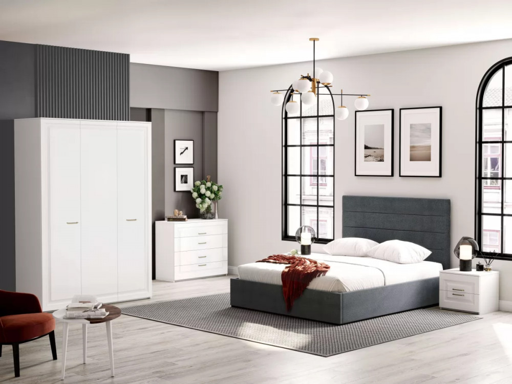 Спальный гарнитур с 3-х створчатым шкафом Анталия Сонома-Графит софт