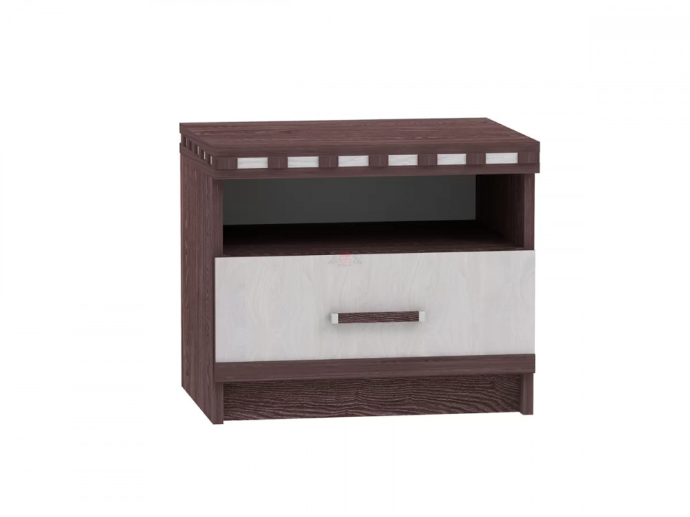 Тумба состоит из одной открытой полки и закрытого выдвигающегося ящика.