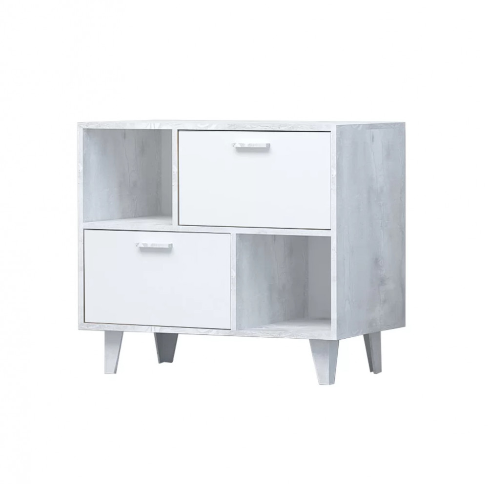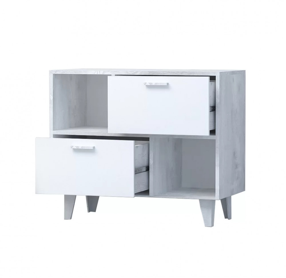ЭГО К-1 Комод с 2мя ящиками бетон светлый/белый глянец на ножках