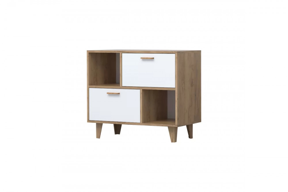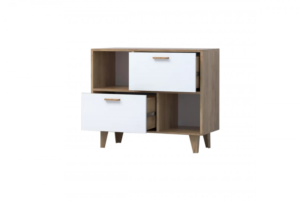 ЭГО К-1 Комод с 2мя ящиками, дуб крафт золотой/белый глянец Диал