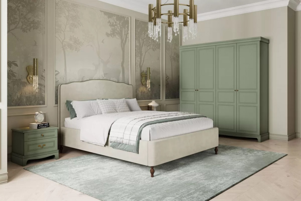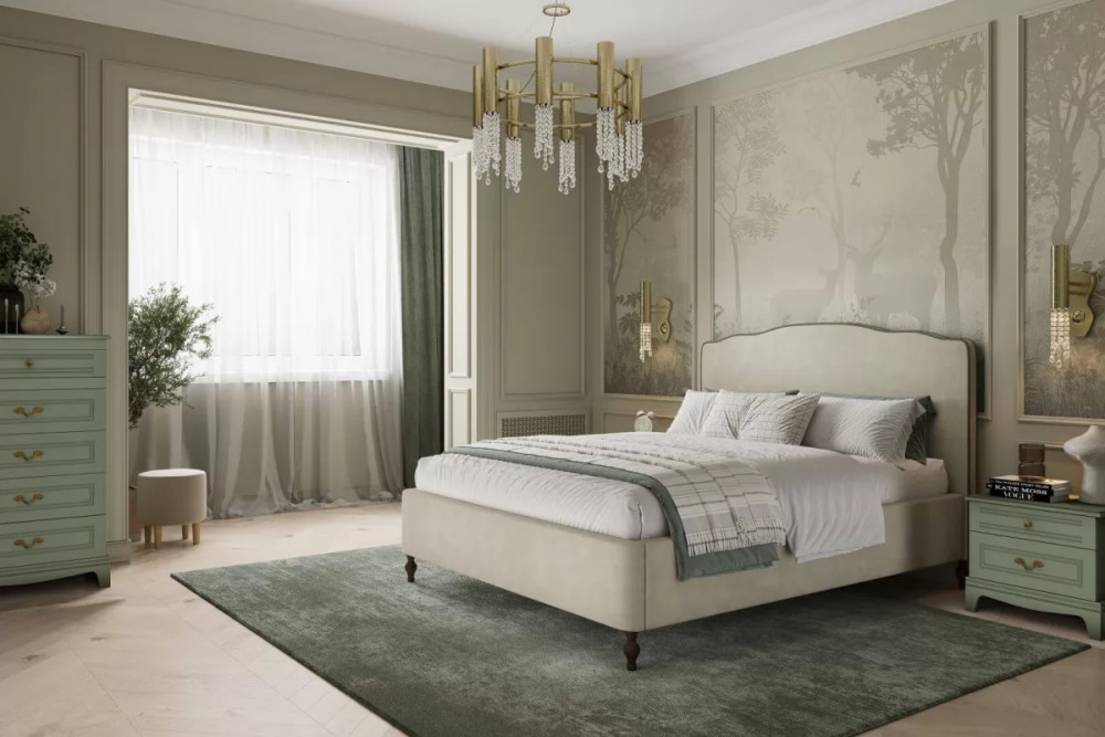 Спальный гарнитур «Стелла» №3 Белый холст, Белый Жемчуг, Велюр Мокко светлый