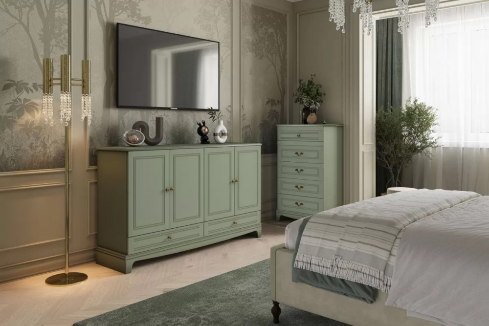 Комод 4 двери + 2 ящика Лорето Персидский жемчуг/Лак Льняной