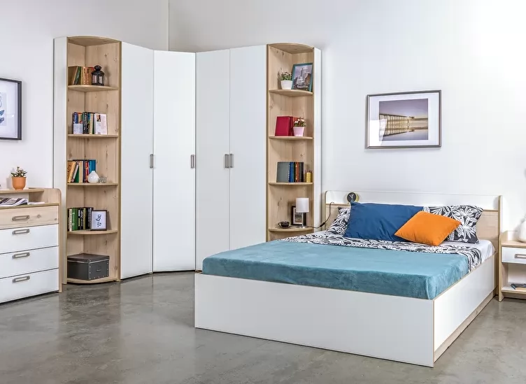 Спальня Веста выполнена в скандинавском стиле. Используется новейший древесный декор, имитирующий шпон натуральной скандинавской сосны. Компаньоном выступает однотонная плита белого цвета с зернистой структурой "шагрень", которая значительно повышает износостойкость белой плиты. Коллекция Веста хорошо проработана для малогабаритных пространств: высокая шкафная группа, двойной функционал модулей. Стол туалетный можно использовать как рабочее место, изголовье кровати как прикроватную тумбу, а в 2-х створчатом шкафу на внутренней части фасада спрятано зеркало.