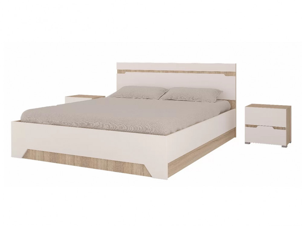 Спальный гарнитур с 3-х створчатым шкафом и комодом Анталия Сонома-Белый софт