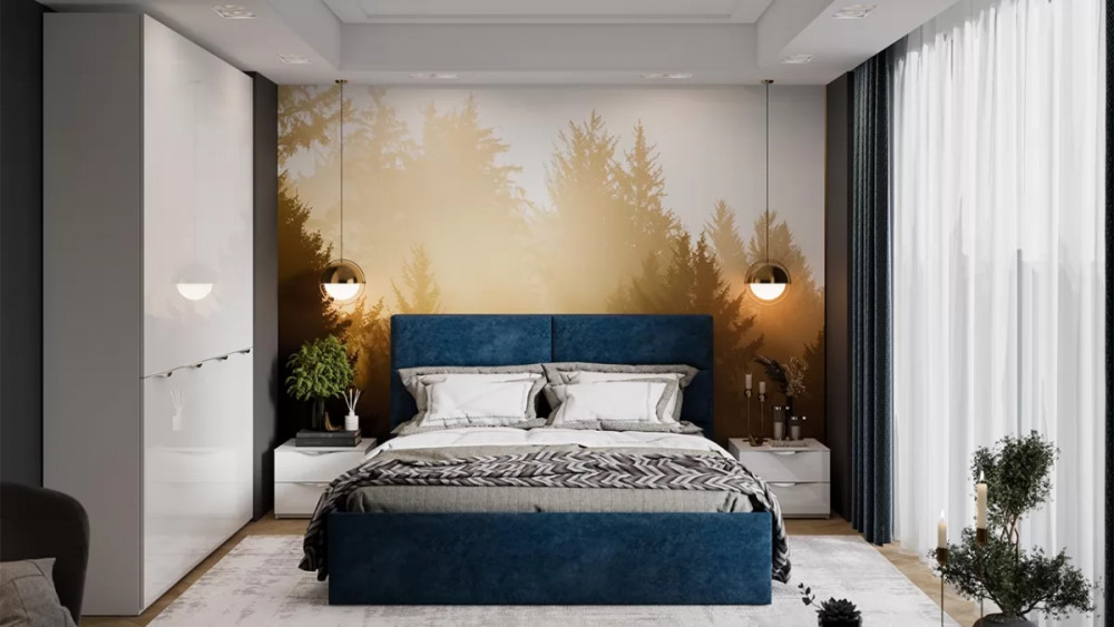 Спальный гарнитур «Глосс» №10 Белый Жемчуг, Белый глянец, Микровелюр Wellmart Blue