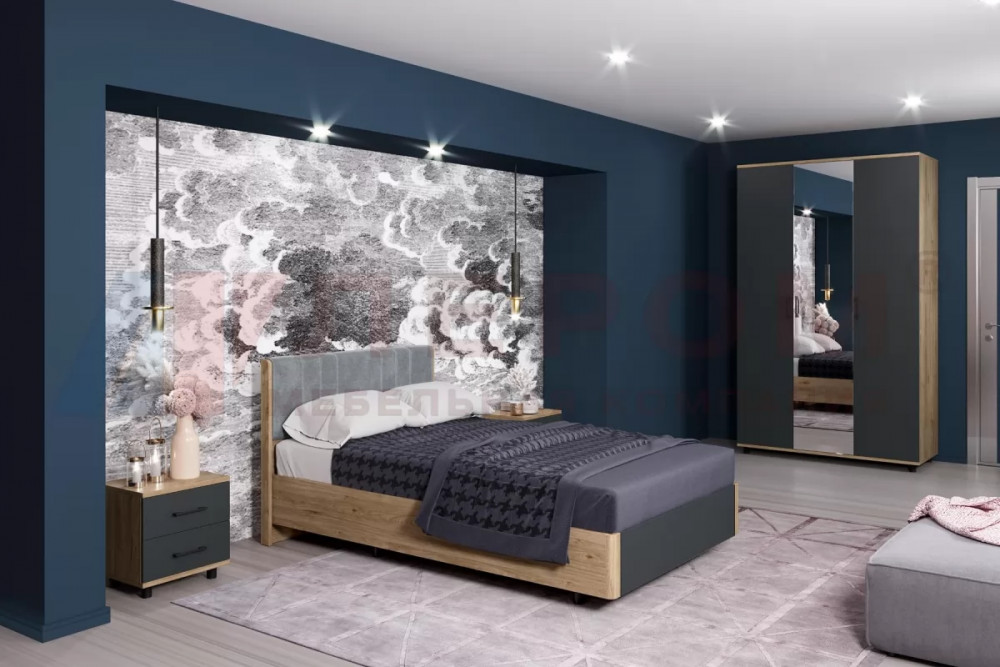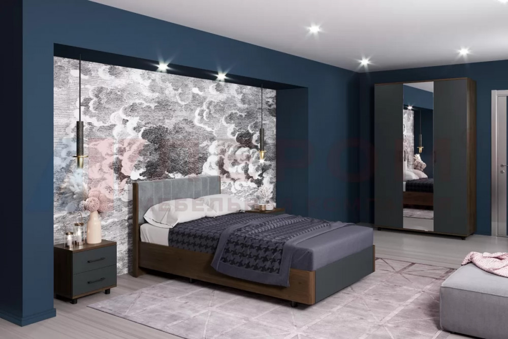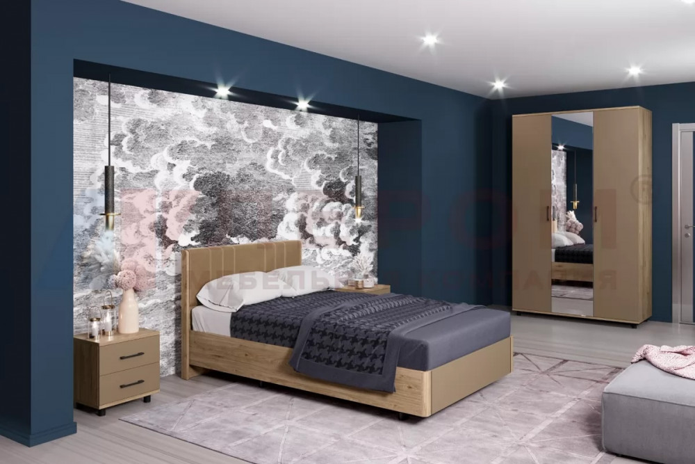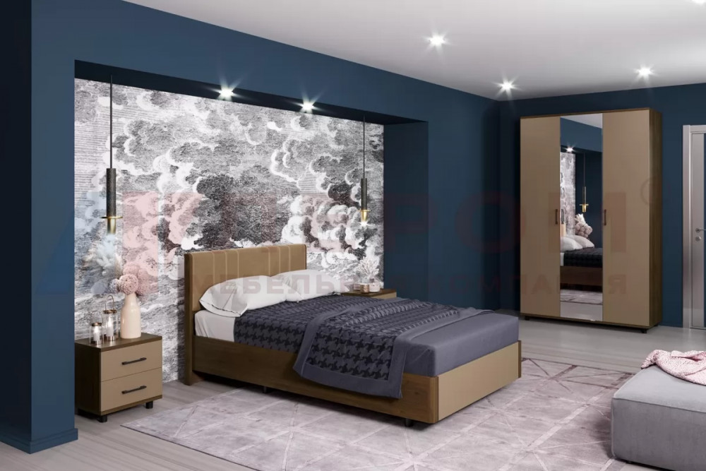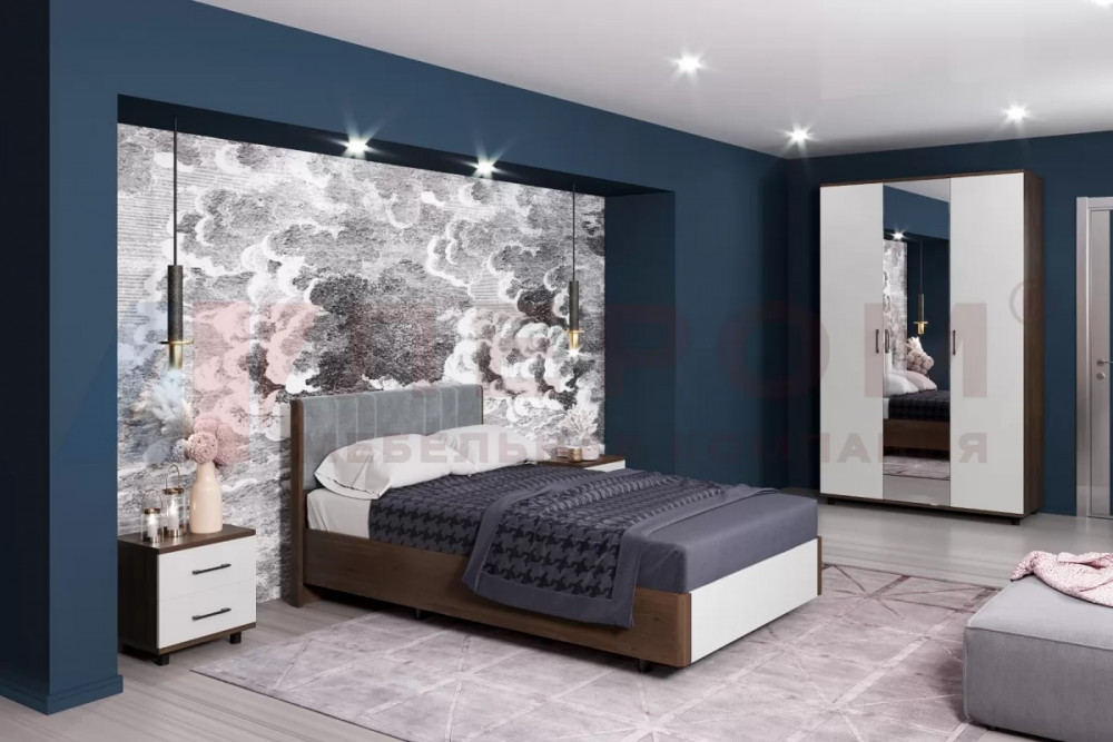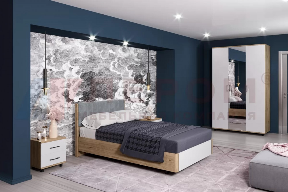 Спальный гарнитур «Стелла» №1 Белый холст, Белый Жемчуг, Велюр Confetti Cream