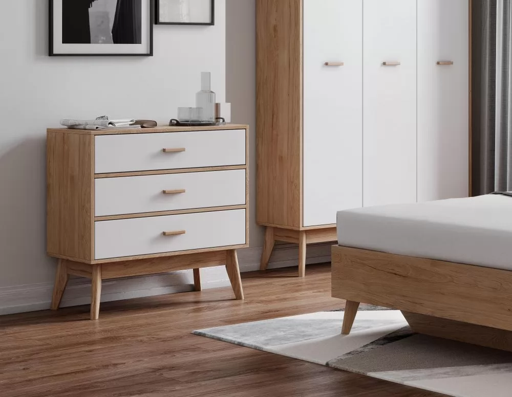 Спальный гарнитур «Калгари» выполнен в полюбившемся многими скандинавском стиле. Основной тон белый, именно он отвечает за визуальное увеличение пространства, поэтому спальня будет выглядеть светло и уютно, просторно будет даже при небольшой площади.
