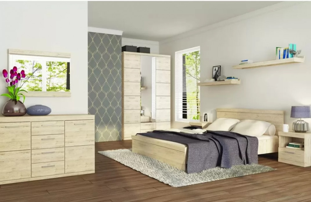 Спальный гарнитур с 3-х створчатым шкафом Анталия Сонома-Графит софт