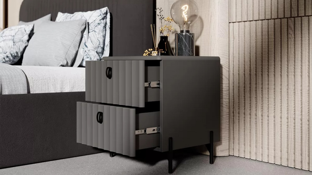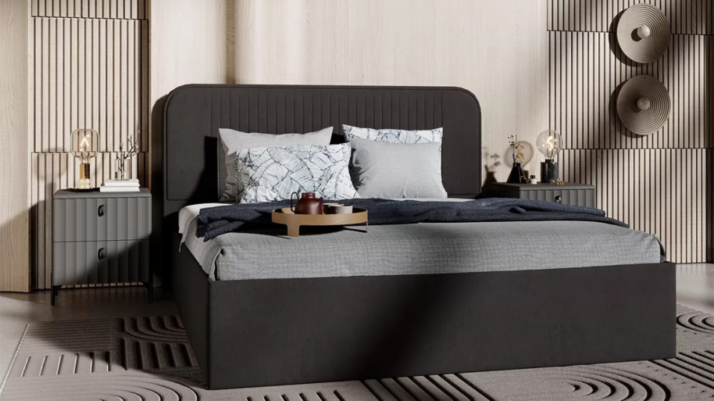 Спальный гарнитур «Тиффани» стандартный Базальт, Грей софт, Велюр Графит