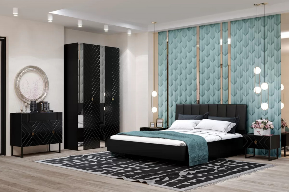 Спальный гарнитур «Глосс» №6 Яблоня Беллуно/Cтекло Графит матовый