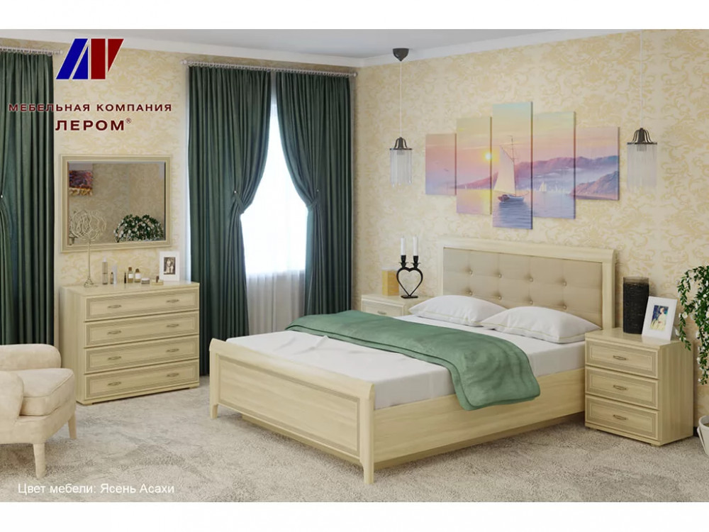Кровать с мягким изголовьем КР-1012 1400х2000 Ясень Асахи