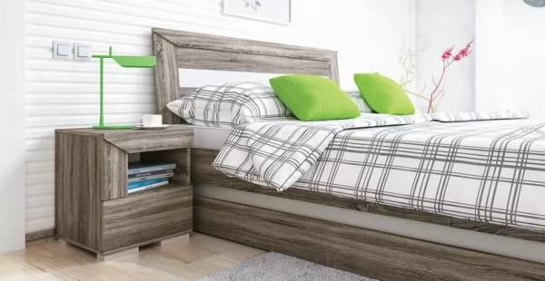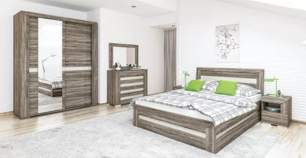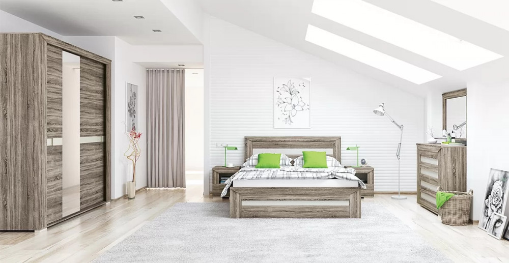 Спальный гарнитур «Порто» №4 Яблоня Беллуно/Графит/Стекло сатин черное