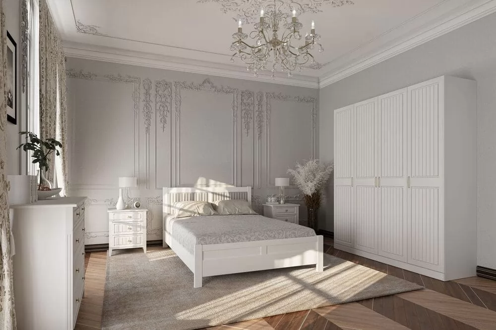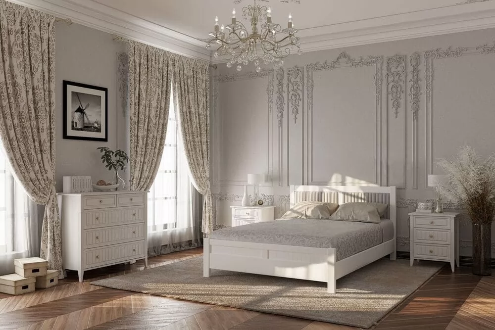 Кровать из массива Фрида Белый античный с ортопедическим основанием