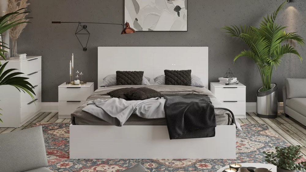 Кровать без ПМ «Тесса» (без подъемного механизма) Тип 2 Белый Жемчуг, Белый глянец