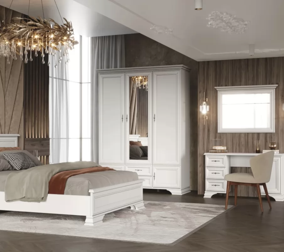 Спальный гарнитур «Тиффани» №1 Белый Жемчуг, Белый софт, Экокожа Polo white