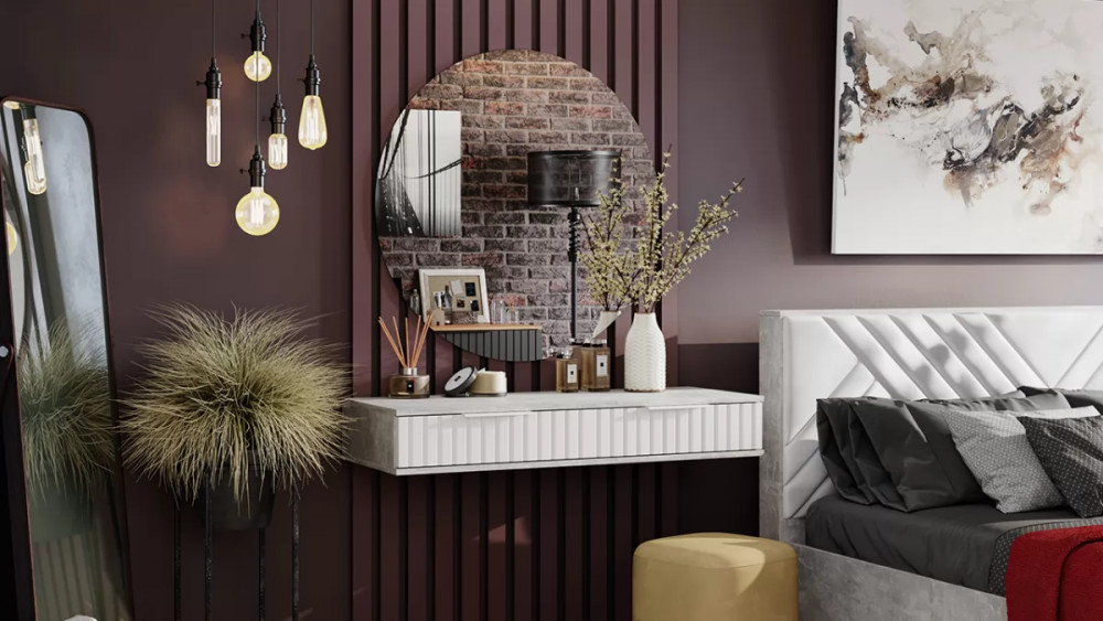 Спальный гарнитур «Джоли» №1 Дуб Крафт золотой, Белый матовый, Велюр Confetti Smoke