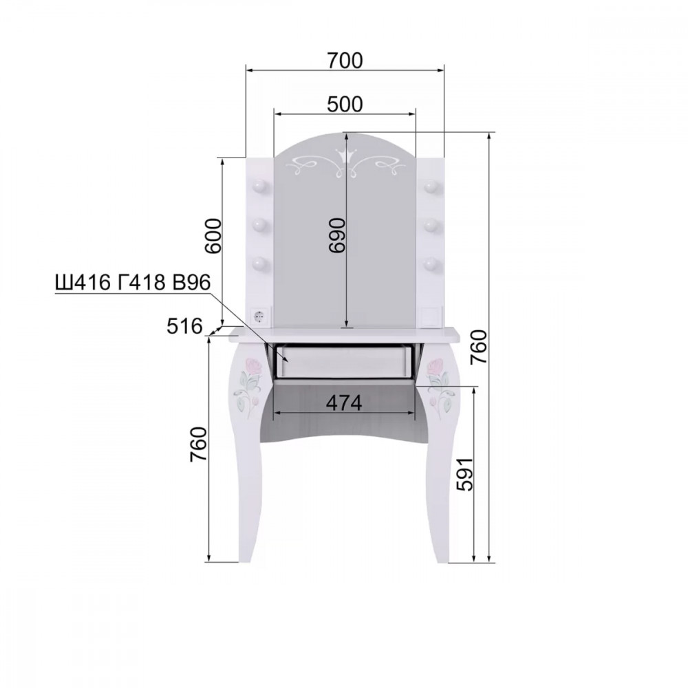 Стол туалетный Розалия №12 +подсветка (лиственница белая)