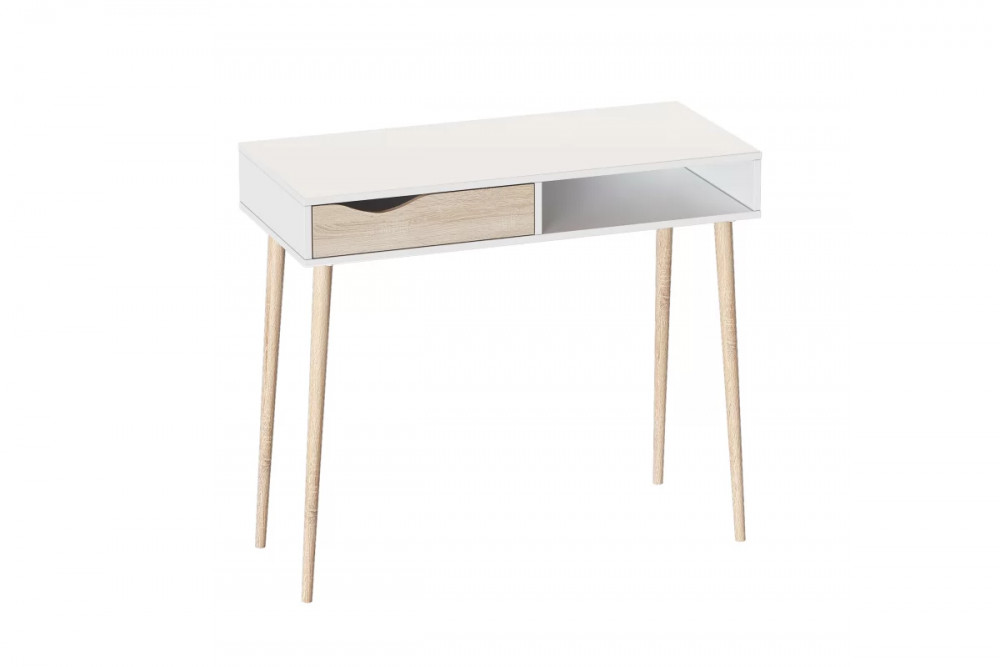 Туалетный стол «Соната» имеет непроходные боковые стенки и состоит из двух отделений. Одно из них оборудовано выдвижным ящиком на шариковых направляющих. Второе отделение представляет собой нишу для хранения. Возможна сборка как на левую, так и на правую сторону.