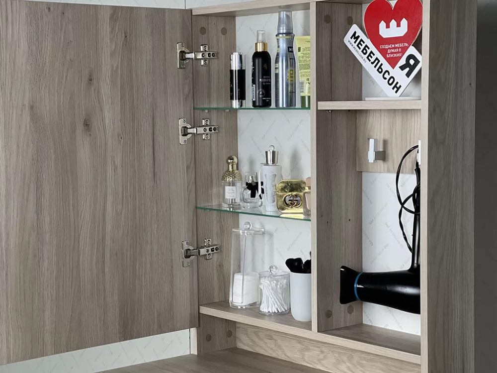 Стеклянные полки за зеркалом.