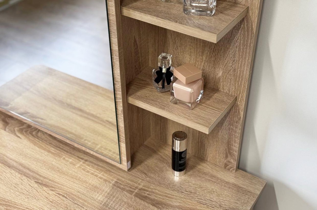 Виктория-1 – это не просто Трюмо. Это место, где каждая деталь важна. С его помощью вы сможете организовать все необходимое: от косметики до аксессуаров. Удобные отделения, выдвижной ящик и просторные полки сделают использование столика максимально комфортным.