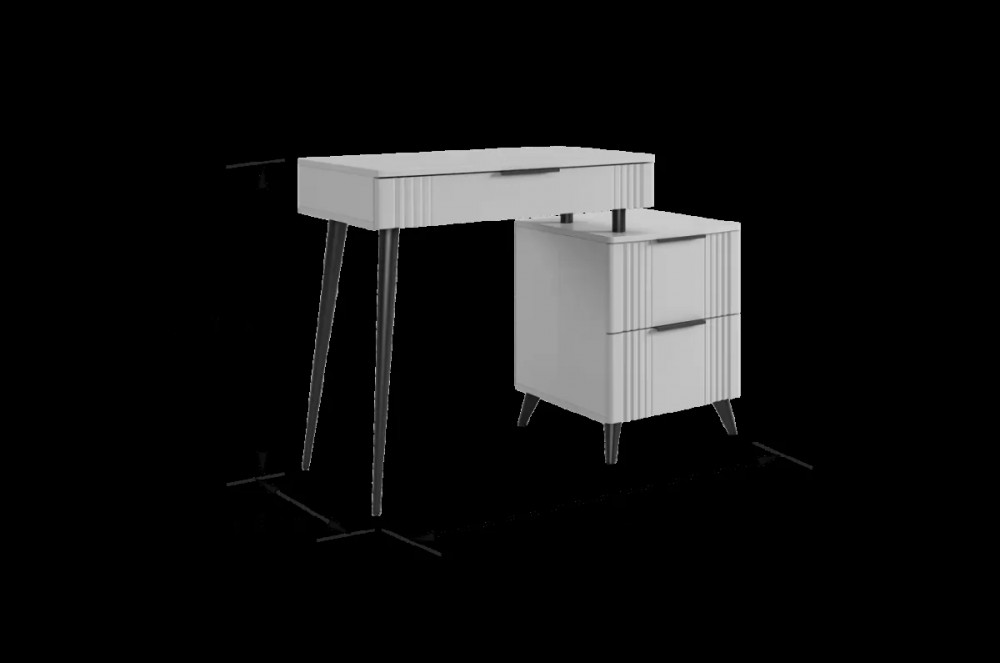 Представляем вам элегантный и функциональный туалетный столик «Катрин»! Этот предмет мебели станет стильным дополнением к вашей спальне и предоставит удобное место для хранения вещей, а также может использоваться как письменный стол.