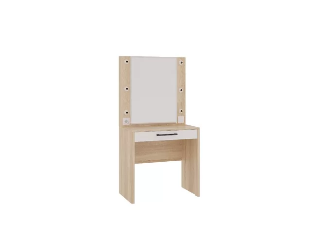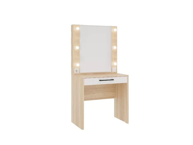Стильное трюмо «Зара» станет прекрасным дополнением спальни или комнаты девочки-подростка, оно дополнит женский уголок, сделает его удобным, функциональным и современным. У трюмо «Зара» в {{in_city}} предусмотрена подсветка, благодаря которой вы сможете нанести макияж, даже самый сложный и профессиональный, в любое время суток: равномерная подсветка естественно освещает лицо и делает процесс нанесения косметики приятным и удобным. Также в этой модели предусмотрены розетка, выдвижной ящик, в котором можно хранить косметику или украшения.
