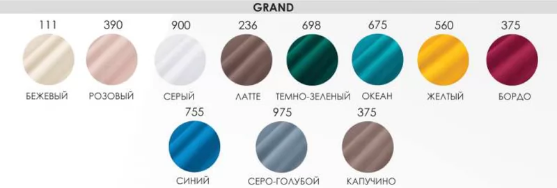 | Ткань: | Grand Желтый 560, Grand Океан 675, Grand Темно-зеленый 698, Grand Латте 236, Grand Серый 900, Grand Розовый 390, Grand Бежевый 111, Nova Бирюза 300, Nova Океан 140, Nova Оливковый 089, Nova Коричневый 085, Nova Бордо 200, Nova Темно-серый 610, Nova Светло-серый 600, Nova Бежевый 910, Nella Оливковый 170, Nella Синий 145, Nella Бирюза 142, Nella Пыльная роза 115, Nella Бежевый 112, Nella Зеленый 089, Nella Океан 088, Nella Шоколад 075, Nella Графит 061, Nella Серый 040 |